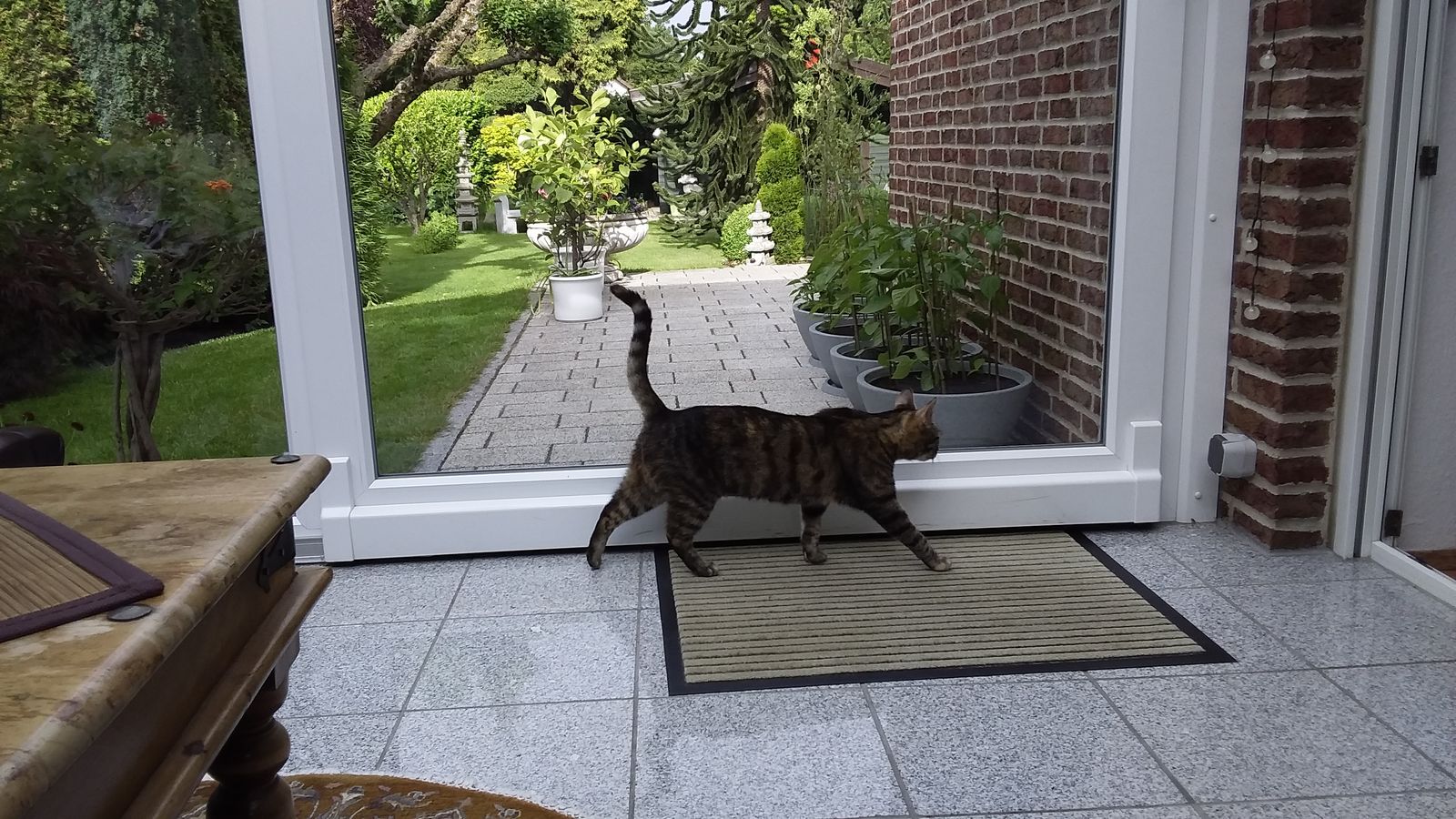 Ich fühle mich sauwohl bei meinen neuen Dosenöffnern, mache kaum Blödsinn (ausser Sockenverschleppen) futtere wie ne große und Abends gibt’s Koikino auf der Terrasse was ich total liebe? Der männliche Dosenöffner hat mir die Krallen geschnitten und mir die Fäden gezogen ,voll tapfer war ich weil ich wusste das er mir helfen will.