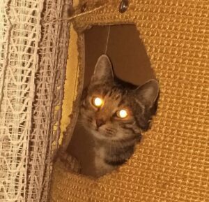 Anbei wieder ein paar aktuelle Fotos – natürlich auch mit ihrem geliebten Katzenturm, leider mit Glitzeraugen und nicht ganz scharf. Viele Grüße