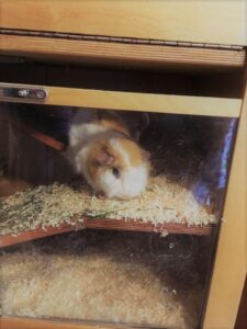 Die Vergesellschaftung mit unserem Meerschweinchen Donna war völlig problemlos. Ein wenig Gefiepe und Herumgerenne, einige wenige harm- und erfolglose Beißversuche, und dann haben sich die beiden gut verstanden.
