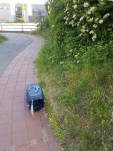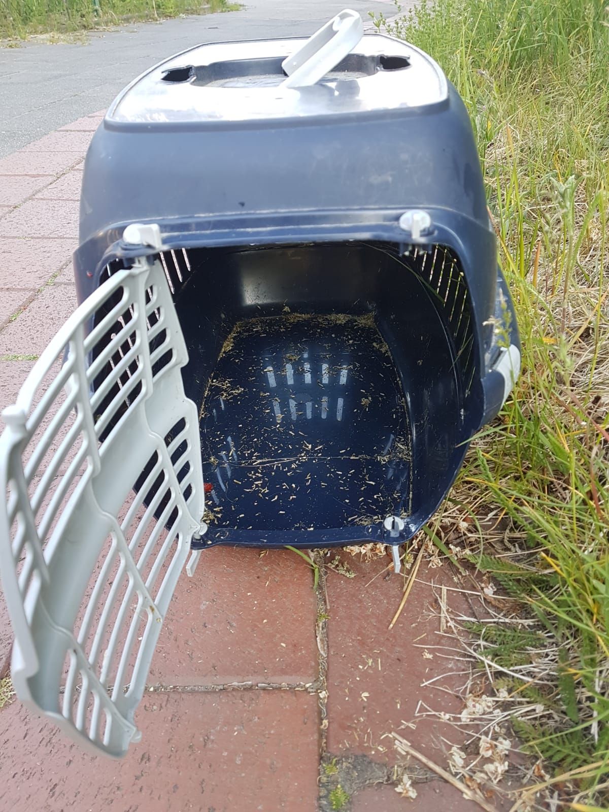 Diese tricolour Katze wurde nachts um 3 Uhr vor der Haustür der Hausmeisterwohnung aufgefunden. Am nächsten Morgen wurde diese Box offen auf dem Fußweg gefunden. Wer diese Katze/den ehemaligen Eigentümer kennt möge sich bitte im Tierheim melden. Die Katze hat sehr viel Glück gehabt, dass sie nicht überfahren wurde und AUSSETZEN geht gar nicht…