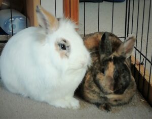 Wir wollten mal eine Rückmeldung geben und sagen, dass er sich gut eingelebt hat. Mit seiner Kaninchendame Emmy versteht er sich auch sehr gut. Er ist sehr freundlich und sie kommen gut miteinander klar. Momentan sitzen sie noch in ihrem Vergesellschaftungsgehege, aber nächste Woche sollen sie dann umziehen.