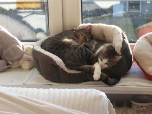 Chili hat sich sehr schnell an ihr neues Zuhause gewöhnt. Wir sind ein eingespieltes Team geworden. Nachdem ich herausgefunden habe, dass sie mir nur dann auf’s Sofa pieselt, wenn sie nicht ausreichend Aufmerksamkeit bekommt, war das Problem schnell ausgemerzt. 9 Monate nach ihrem Einzug habe ich einen 15 Wochen alten Kater noch zu uns geholt. Chili hat ihn hervorragend erzogen und die beiden waren schnell ein Herz und eine Seele. Vor einem Jahr haben wir die 3 Zimmerwohnung gegen ein Reihenhaus getauscht. Meine größte Angst war es, sie raus in den Garten zu lassen…..