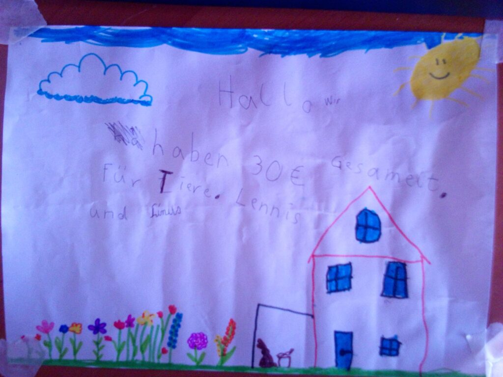 Vielen Dank an die fleißigen Spender Lennis und Linus 10.05.2021 16.05.2021 Allgemeines Vielen Dank an Lennis und Linus, die uns mit diesem Bild eine 30 Euro Spende überreicht haben.