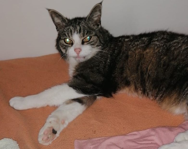 Fundkatze, die gestern Abend zwischen Klein Ilde und Neuhof gefunden wurde. Das Tier war sehr geschwächt und konnte sich kaum auf den Beinen halten. Ein Tierarzt wurde aufgesucht und Sie erhielt drei Spritzen, gebrochen wäre nichts. Bitte im Tierheim melden, wer die Katze kennt.