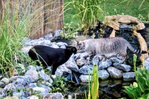 Die beiden spielen toll miteinander…Treppe hoch, Treppe runter. Und für Cleo ist es das größte, wenn Frieda mit draußen ist und die beiden im Garten hin und her rennen können.