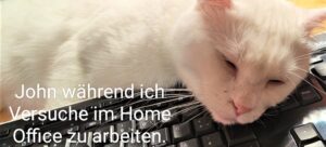 John brauchte eine Weile, aber mittlerweile können wir auch beide mit ihm kuscheln. Dazu ist er immer sehr hungrig. Alles, was zu fressen da ist, muss immer gleich aufgegessen werden.
