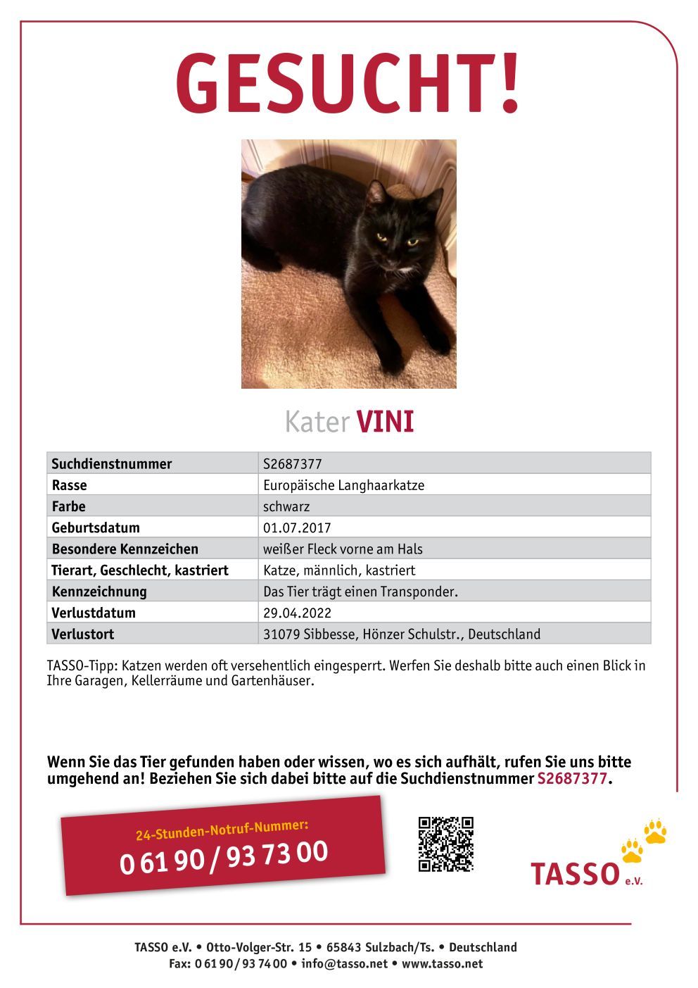 Vermisst – Kater Vini aus Sibbesse