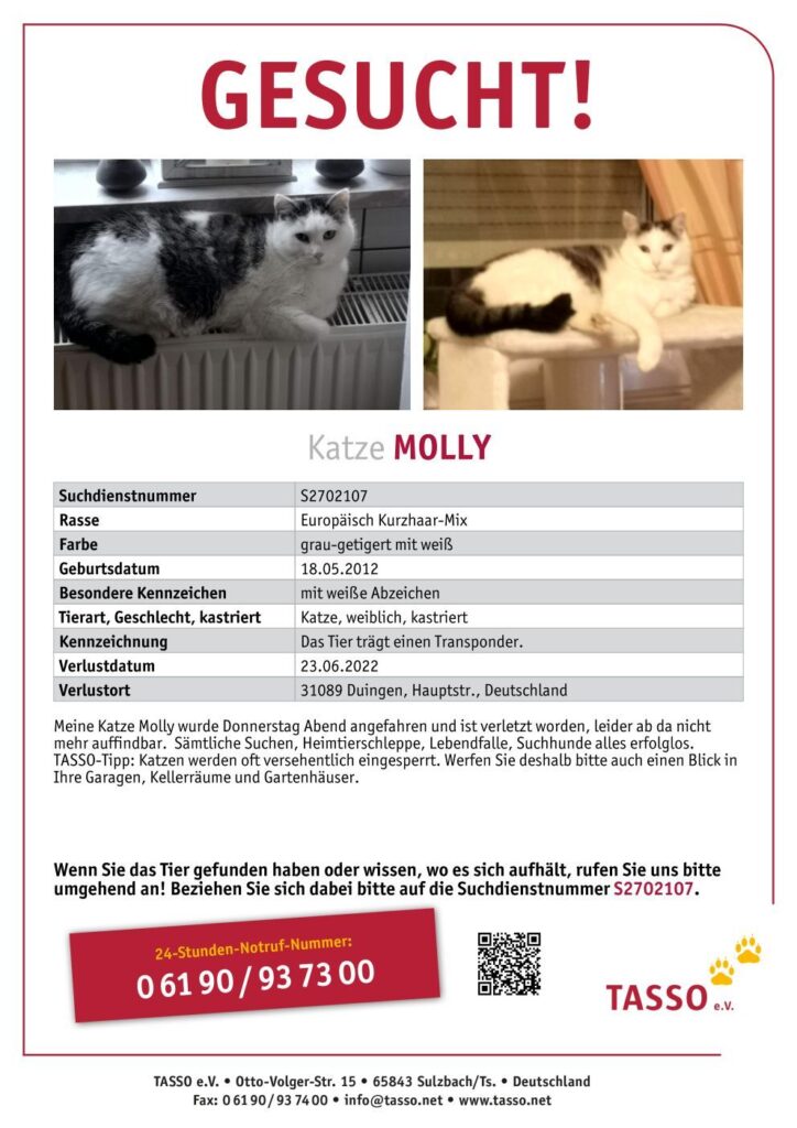 Vermisst – Katze Molly aus Duingen