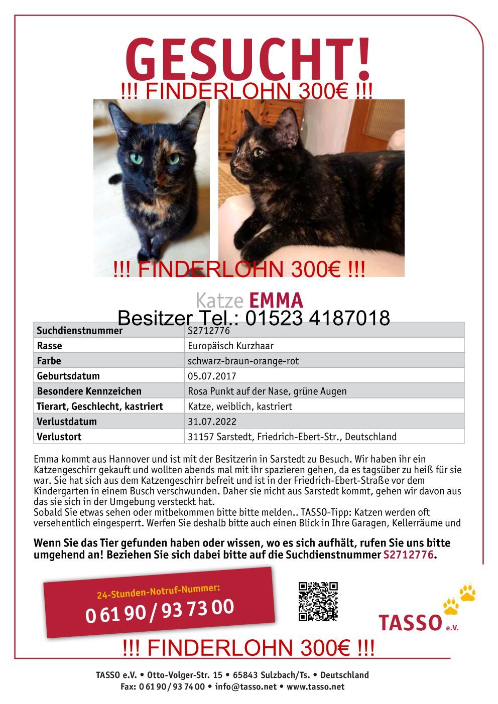 Vermisst – Katze Emma aus Sarstedt