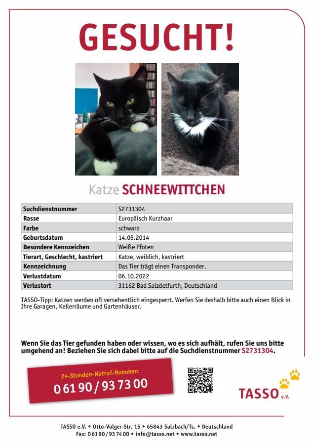 Vermisst – Katze Schneewittchen aus Bad Salzdetfurth