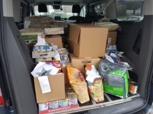 Wir möchten uns auf diesem Wege nochmal ganz herzlich für das Engagement und die riesige Spendenbereitschaft der Firma Hornbach und ihrer Kunden bedanken. Nachdem schon im Jahr 2021 zur Weihnachtszeit ein 7,5 Tonner von Hornbach die Spenden zu uns brachte, wurde letztes Jahr fast die gleiche Menge mit Mühe und Not in einen Kleintransporter “gequetscht”. Es war wieder alles dabei, was sich unsere Vier- und geflügelten Zweibeiner erträumt haben.