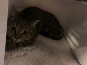 Diese beiden Katzen wurden am 31.12.2022 in einer Transporttasche in Hildesheim, Bischofkamp gefunden. Sie standen in einem Mehrfamilienhaus im Kellerbereich.
