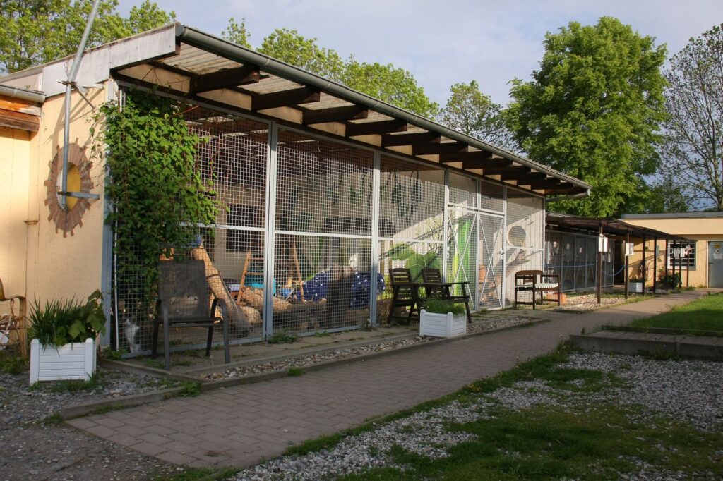 Unsere Katzen werden in zwei Gebäuden betreut. Die einzelnen Räume sind nett und artgerecht eingerichtet, um den Spieltrieb der Katzen zu fördern.