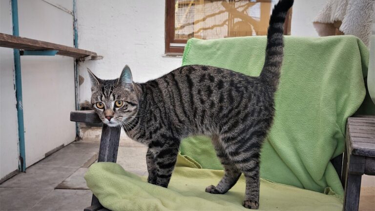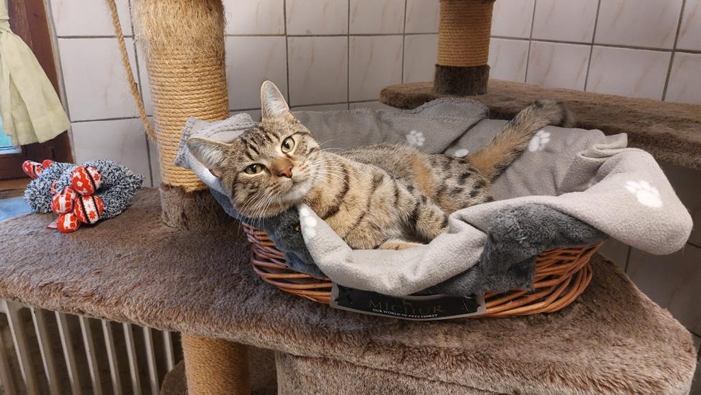 Puki kam ebenfalls am 20.01.2023 aus privaten Gründen zu uns ins Tierheim. Er ist lieb und zugänglich, aber etwas grimmiger, wenn man etwas von ihm möchte, was er nicht möchte. Er ist der dunklere der beiden Kater und sitzt gern auf seiner grünen Decke.