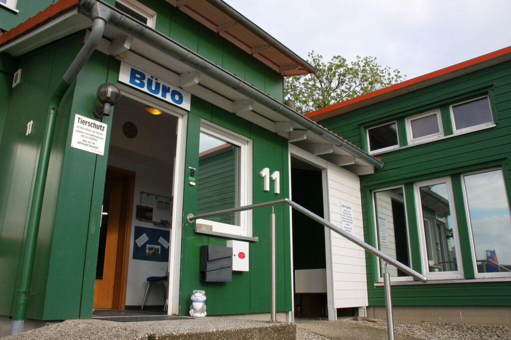 Sie finden hier kompetente Mitarbeiterinnen, die Ihnen weiterhelfen können. Sie beantworten erste Fragen, helfen Ihnen den richtigen Ansprechpartner zu finden, nehmen Tiere an oder füllen Ihre Verträge oder Anträge aus. Geldspenden können hier direkt abgegeben werden, Sachspenden können Sie dagegen auch außerhalb der Öffnungszeiten in dem offenen “Spendenschuppen” rechts vom Treppenaufgang ablegen. Die Anmeldung und Abgabe von Pensionstieren oder Fundtieren ist hier ebenfalls zu den Büroöffnungszeiten möglich.