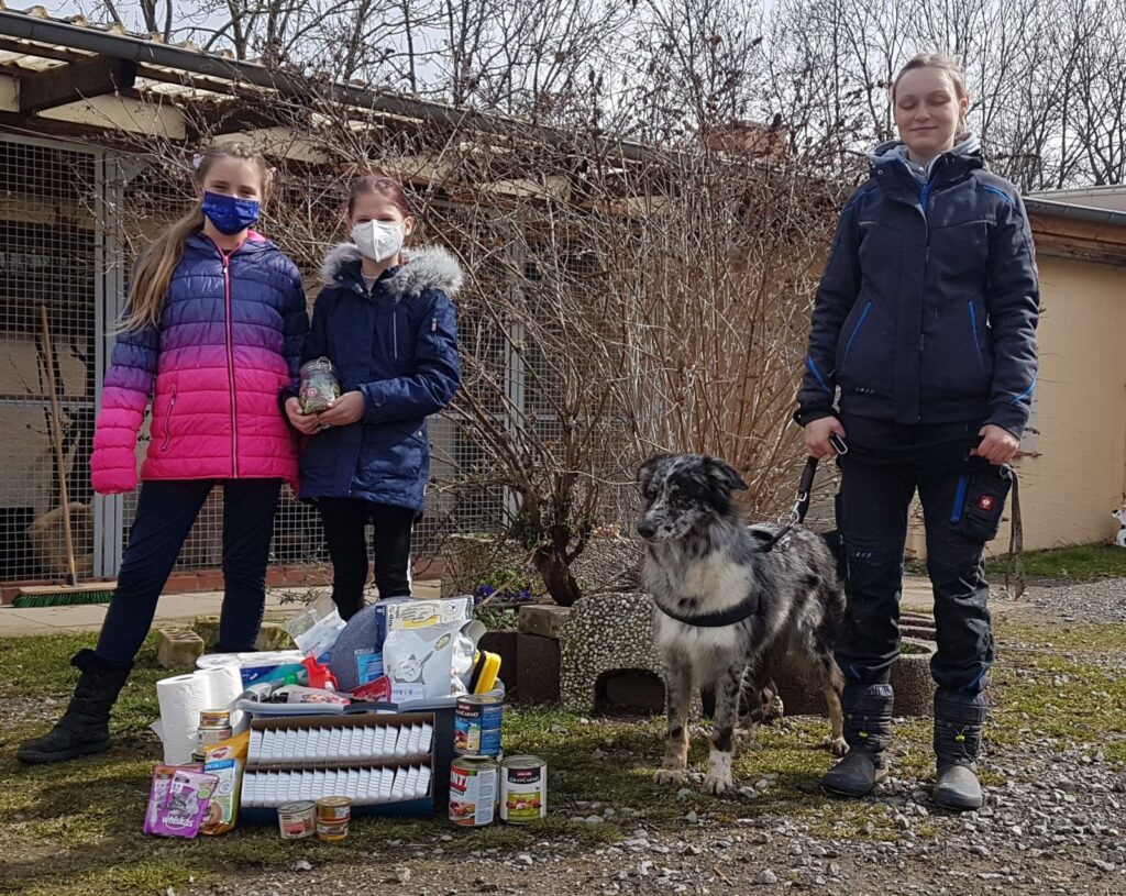 Hannah Sophie Niemann und Maya Marlene Markwort haben eine tolle Idee gehabt und sie sehr erfolgreich verwirklicht. Sie entwarfen “helfen” Flyer und bunte “Dank” Karten und sammelten in Lamspringe für das Tierheim Hildesheim. An 4 “Einsatztagen” kamen stolze 415,16€ und einiges an Hunde- und Katzenfutter zusammen.